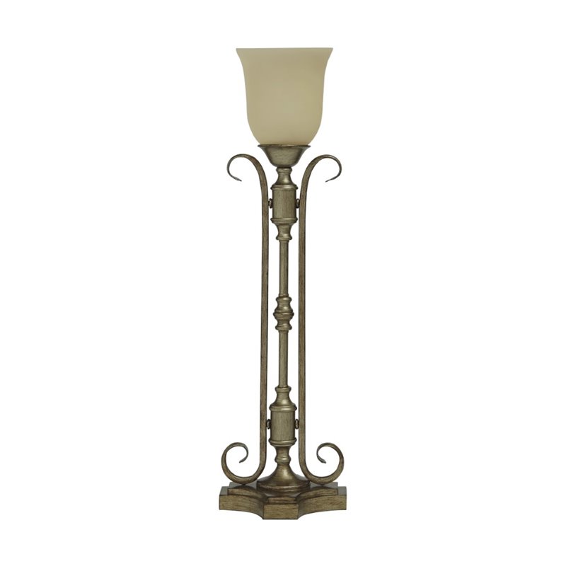 | Ashley Furniture - Table Lamps - L208084 - Finish: Antique Gold Finish; Glass Shade; On/Off In-Line Switch; Type A Bulb - 60 Watts Max or 13 Watts Max CFL. Specifications:Overall Product Dimensions: 30.25"" H x 8.5"" W x 7.38"" D; Overall Product Weight: 9 lbs; Shade: 6.75"" x 6.75"" x 7.00"".