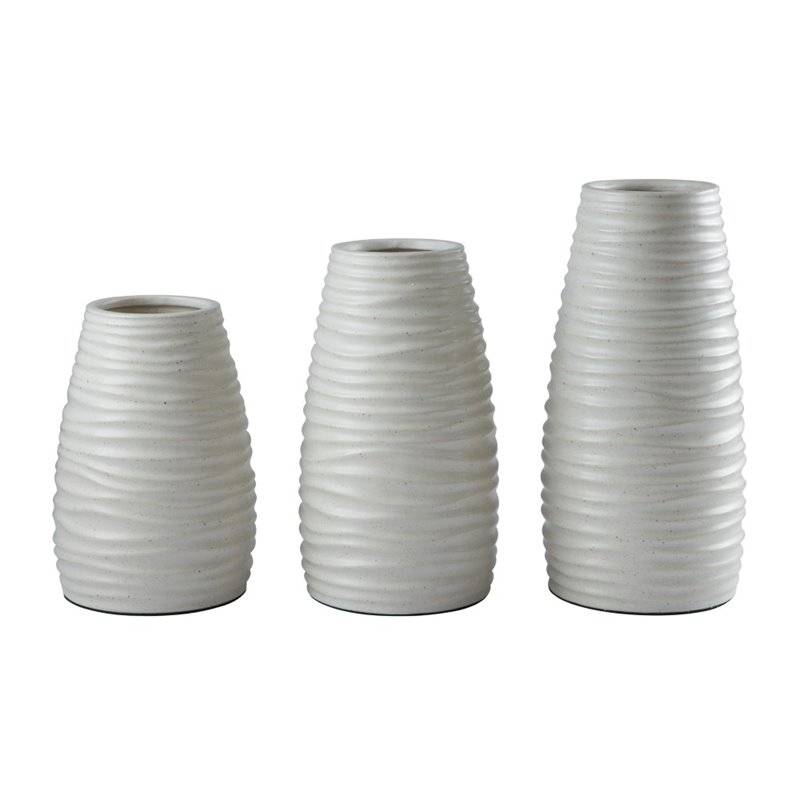 | Ashley Furniture - Vases / Urns - A2000194 - Finish: White. Specifications:Overall Product Weight: 14 lbs; Large Vase: 5.00"" x 5.00"" x 10.00""; Medium Vase: 5.00"" x 5.00"" x 8.50""; Small Vase: 5.00"" x 5.00"" x 7.00"".